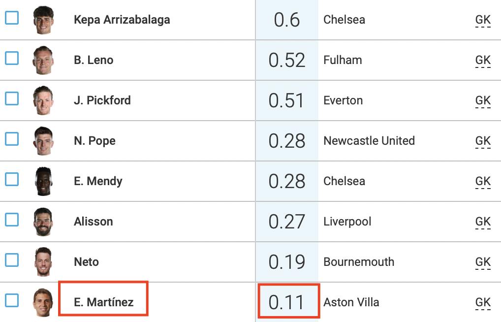 Below shows the prevented goals statistics per 90 minutes from the 2022/23 Premier League season, with the Argentine currently eighth in the standings with 0.11 (Stats retrieved from Wyscout).