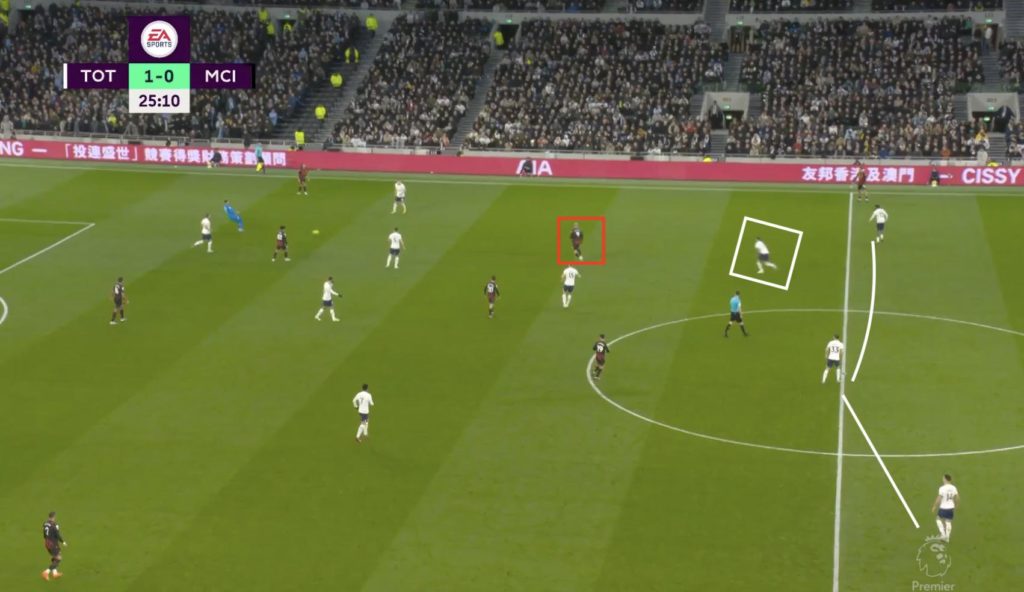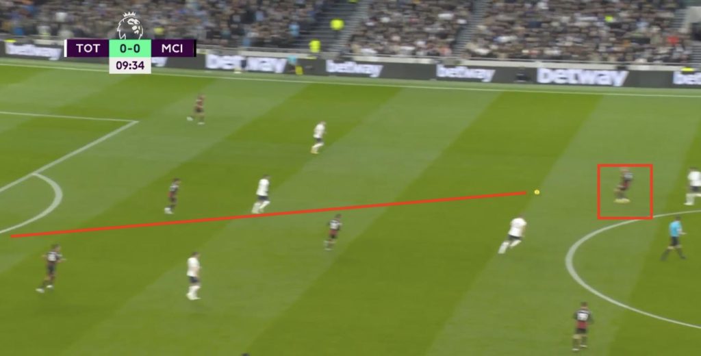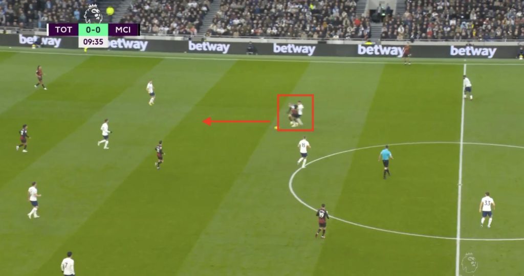 Below shows the Norwegian receiving the ball from Ederson before being pinned back into his own half by the Tottenham defender.