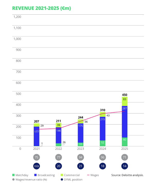 The latest graph from Deloitte just showcases that, while highlighting the dramatic rise in commercial and matchday revenue.