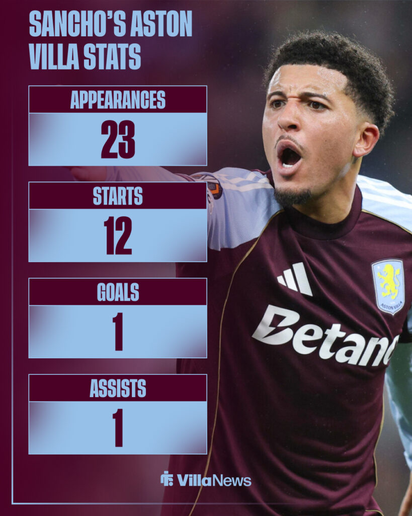 Sancho joined Aston Villa from Manchester United on a season-long loan, although after 14 top-flight appearances, he is still waiting for his first Premier League goal under Unai Emery.